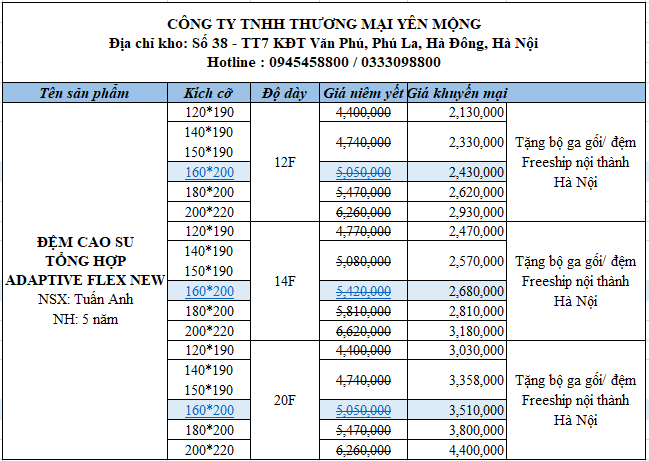 - Tên thương hiệu: Đệm cao su tổng hợp Adaptive Flex New