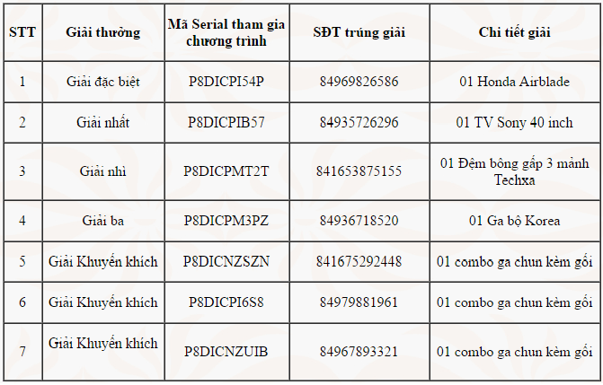 Ngày 21/3, Công ty tiếp tục quay số trúng thưởng lần 2, nhằm tìm tiếp những khách hàng may mằn cuối cùng nhận những giải thưởng có giá trị, và dưới đây là danh sách khách hàng trúng thưởng đợt 2.